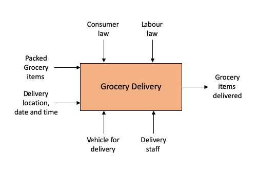 NOTE: Figures 2 and 3 correlate: Consumer law and Labour law represent Control; Packed grocery items and delivery represent input; Vehicle for delivery and delivery staff represent Mechanism (resource) and Grocery delivery is the outcome.